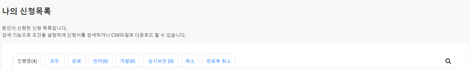 | 신청일 | 신청한 날짜가 표시됩니다. |