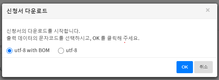 「Admin」, 「관리자」, 「신청 관리자」 권한의 사용자가 신청 데이터를 다운로드하는 경우에는 여기를 참조해주세요.